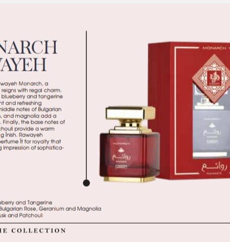 Rawae'e Monarch : يتكون من العائلة العطرية الفاكهية العطرية، وتتضمن مكوناته الافتتاحية التوت البري والماندرين، وقلبه من ورد بلغاري وإبرة الراعي والماغنوليا، وقاعدته من المسك والباتشولي