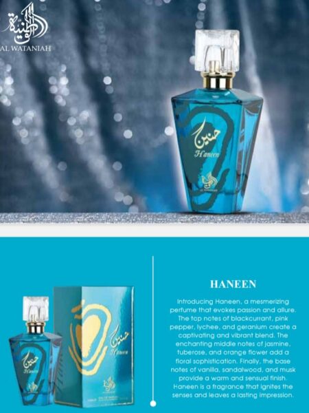 تهاني : مزيج عطري شرقي يضم في مقدمته الألدهيدات، الورد، أوراق البنفسج، الخوخ، أوسمانثوس، والفاوانيا. أما قلب العطر فيحتوي على مسك الروم، الورد، زهر البرتقال، والبرقوق، بينما تتكون قاعدته من خشب الصندل، المسك، طحلب البلوط، العنبر، الأرز، والباتشولي