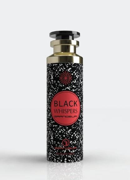 Black Whispers : مستوحي من عطر Black Opium : عطر شرقي - فانيليا للنساء . إفتتاحية العطر الكمثري, الفلفل الوردي و زهر البرتقال; قلب العطر القهوه, الياسمين, اللوز المر و العرقسوس; قاعدة العطر تتكون من الفانيليا, الباتشولي, أخشاب الكشمير و خشب الأرز