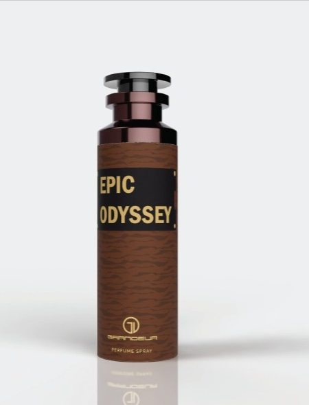 Epic Odyssy : مستوحي من عطر Epic Adventure Emper : عطر خشبي - أروماتك للرجال . إفتتاحية العطر الماندرين (اليوسفي), الجريب فروت, الشيح و الليمون; قلب العطر الريحان, الخزامي, الباتشولي و خشب الأرز; قاعدة العطر تتكون من طحلب البلوط (طحلب السنديان), الجلود و العنبر.