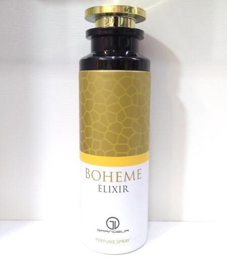 Boheme Elixir - بوهيمي اليكسر : مستوحي من عطر Wanted Girl Azzaro : عطر شرقي - زهري للنساء . إفتتاحية العطر زهور الزنجبيل, زهر البرتقال, الفلفل الوردي و الرمان; قلب العطر حلوي الكراميل و زهر الداتوره; قاعدة العطر تتكون من حبوب التونكا, الباتشولي و نجيل الهند من هايتي.