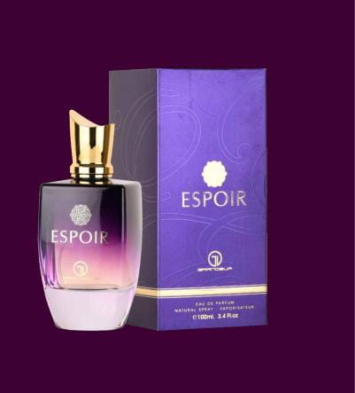 ESPOIR - اسبوير : مقدمة العطر: البرغموت والروائح الخضراء. قلب العطر: العنبر، البطيخ، الأناناس، والروائح الحلوة. قاعدة العطر: الأخشاب، المسك، والفانيليا