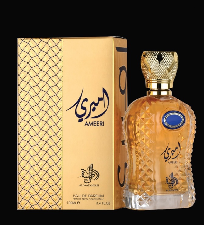اميري : فتتاحية العطر تتضمن الزعفران والهيل واللافندر، وقلب العطر يتكون من الجلود ونجيل الهند، أما قاعدة العطر فتتكون من خشب العود والعنبر