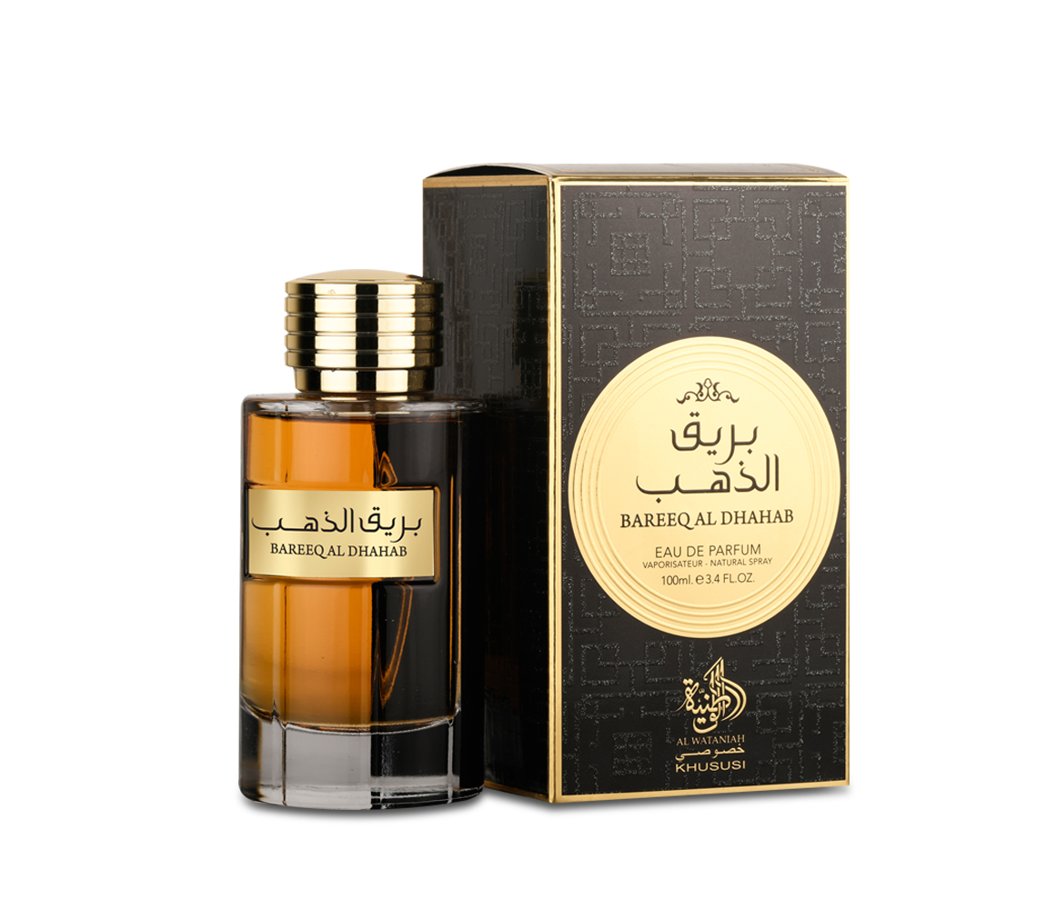 بريق الدهب : تتكون من روائح افتتاحية من الزعفران والفلفل، قلب عطري يضم العود والكراميل والزهور، وقاعدة تتكون من البخور والمسك والعنبر والأخشاب. هذا المزيج يجعله عطراً شرقياً خشبي حلو وغنياً.