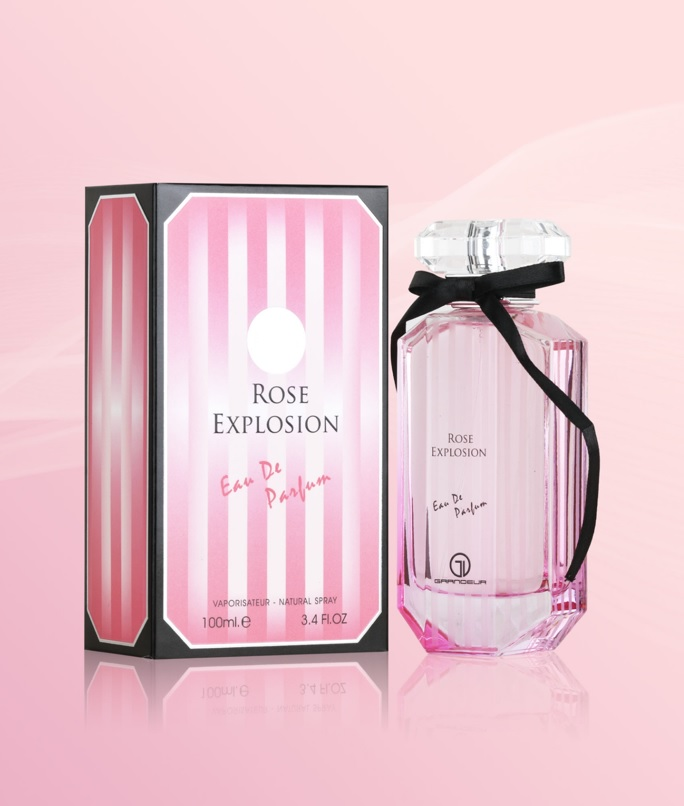 ROSE EXPLOSION – روز اكسبلوشن : نفحات عليا من التوت الأسود، ونفحات وسطى من زهرة الفاوانيا، وقاعدة عطرية من البتشولي والفانيليا. هذا العطر يندرج ضمن عائلة العطور الزهرية والفواكه، وهو مصمم ليكون مناسبًا للجنسين ويمكن استخدامه خلال اليوم أو في المساء.
